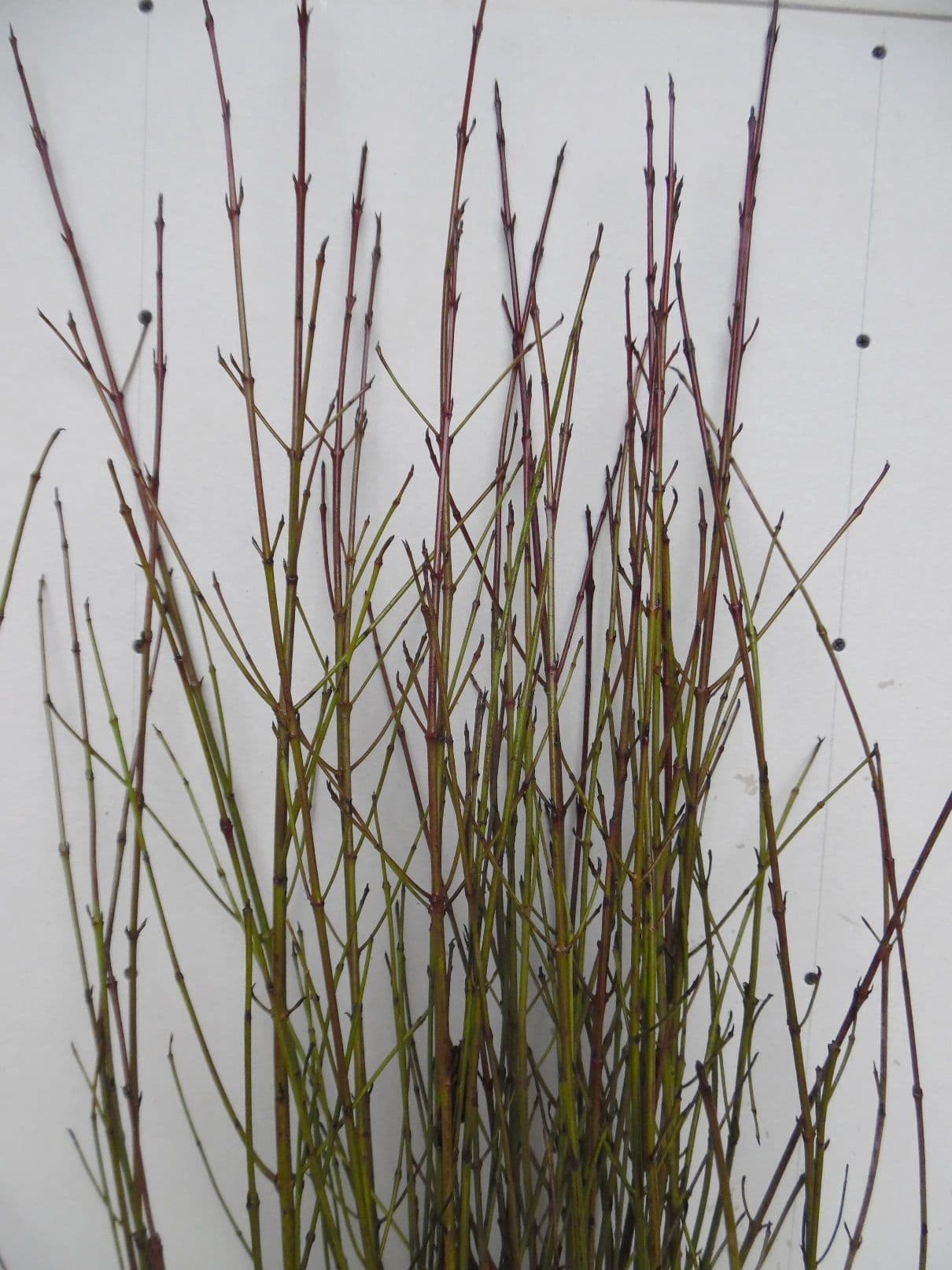 Cornus sanguinea (Common Dogwood) is a native shrub commonly used for hedgerows. Stems are green and red. Excellent autumnal colours. Suitable for damp chalky positions.