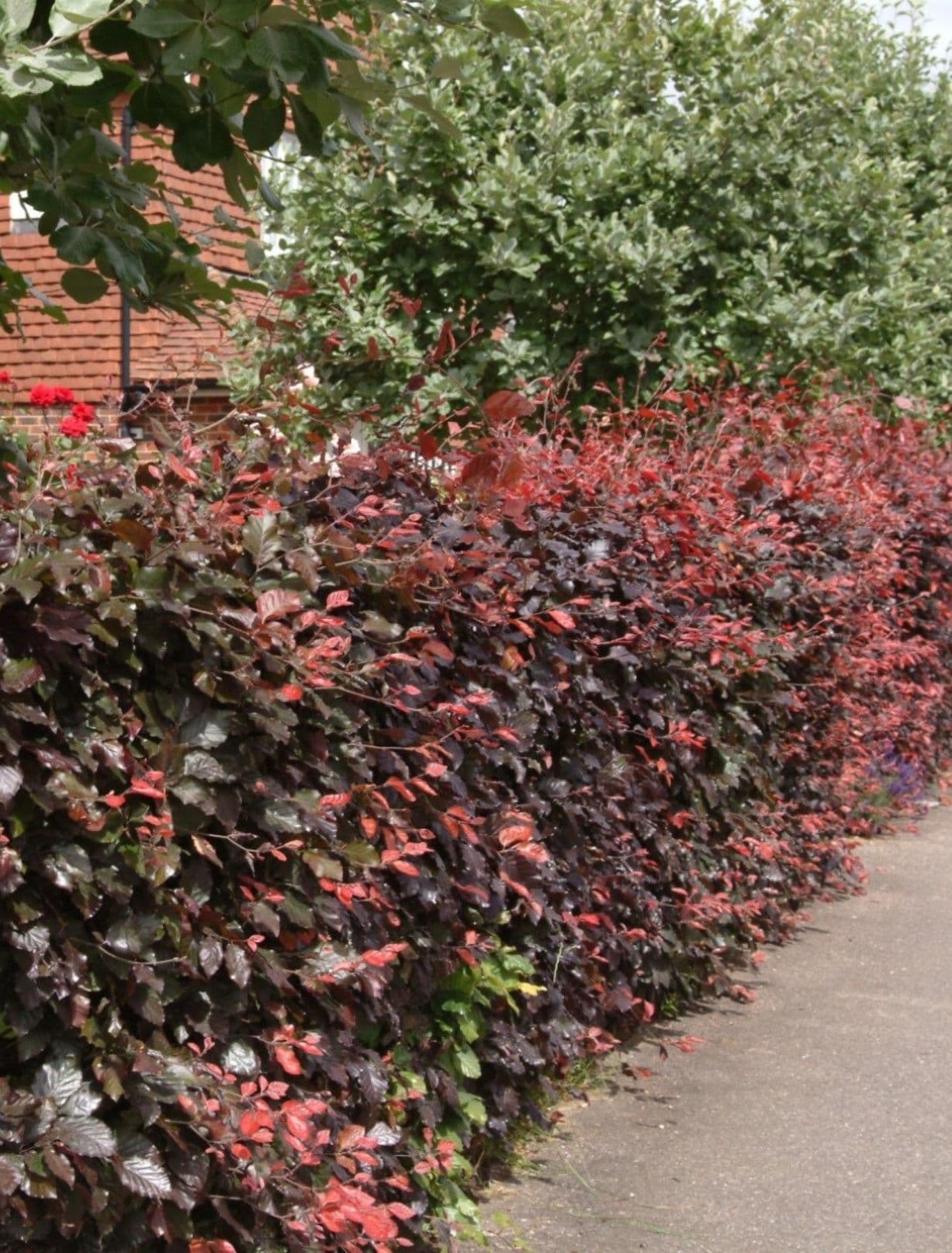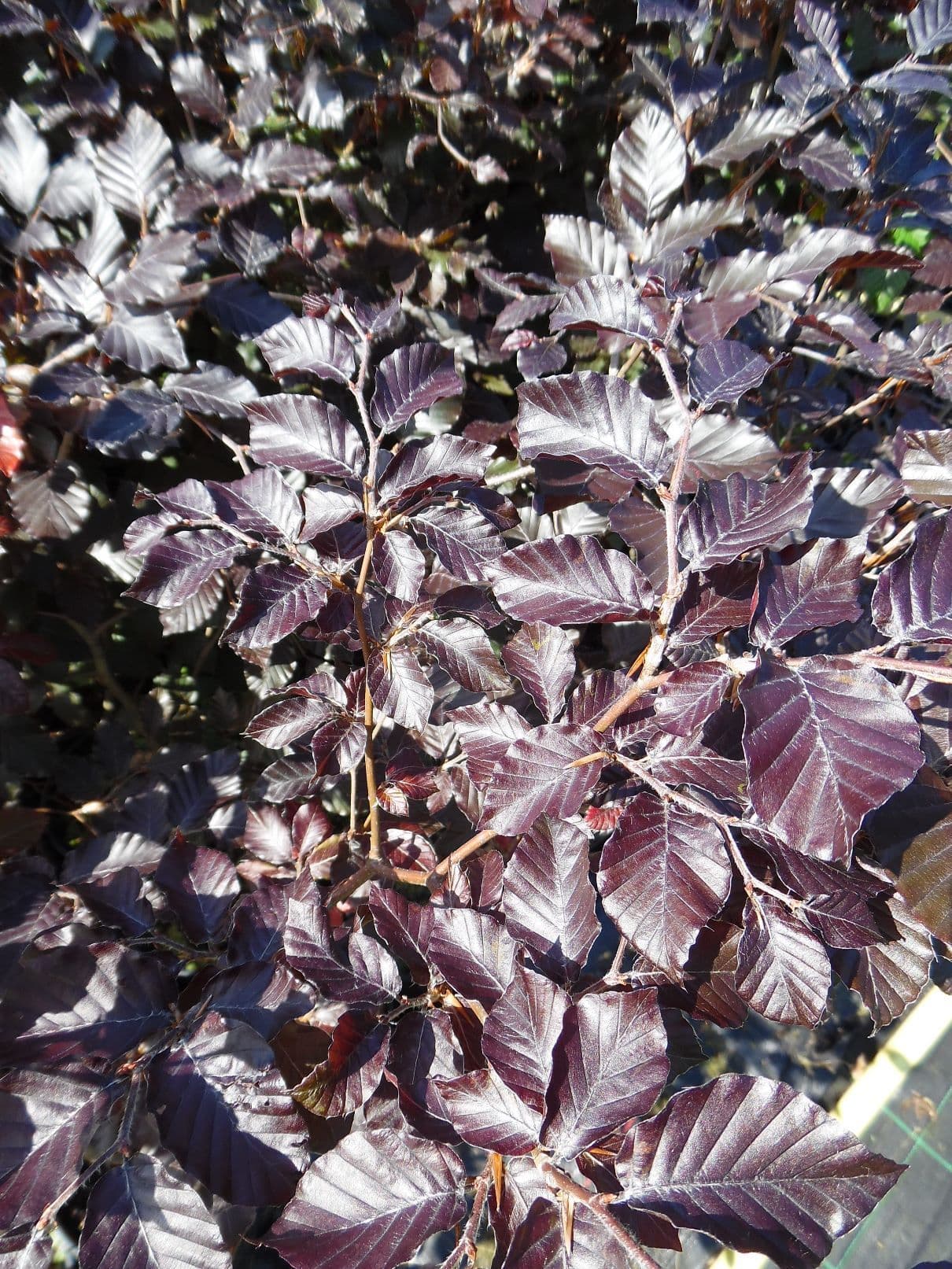 Fagus sylvatica Atropurpurea - Purple Beech is a native tall spreading tree or hedging plant with smooth silver grey bark and deep purple leaves turning copper in autumn. Deciduous but retains coppery leaves during the winter. Shade tolerant.