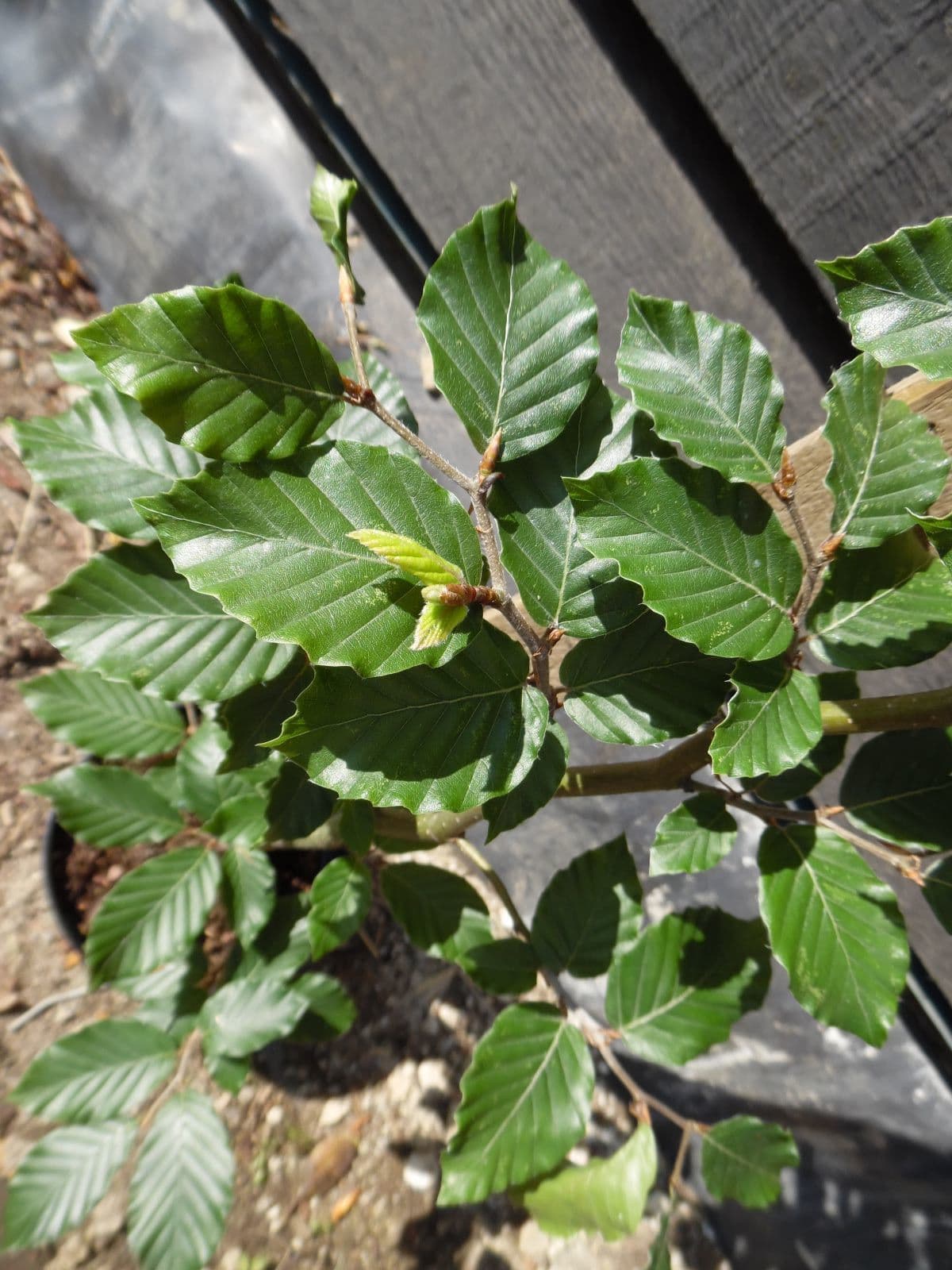 Fagus sylvatica - Green Beech is a native plant which needs space as it grows to form a tall wide spreading tree. The young leaves are light green turning to a cooper colour in the autumn. Needs a well drained soil and will grow well on chalky soils. Mostly used for hedging and will form an excellent hedge.