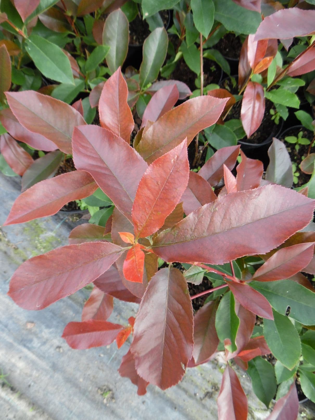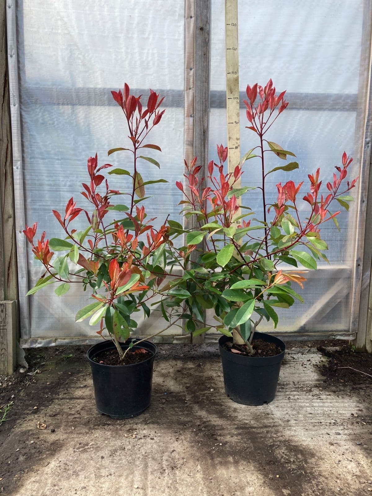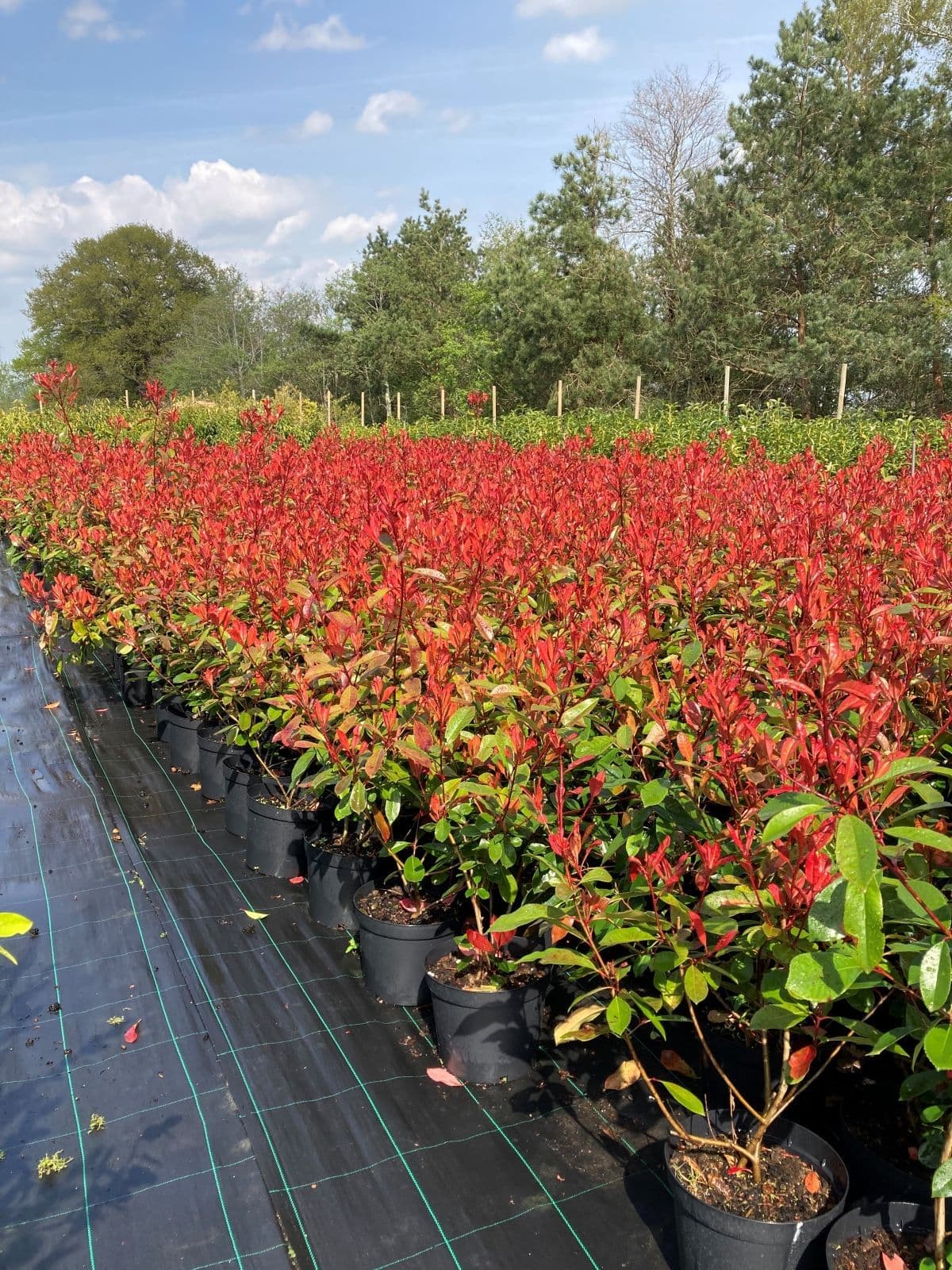 Photinia x fraseri Red Robin is an upright, evergreen shrub with bronze to red leaves when young and dark green leaves when mature. Produces white flowers in mid spring. Hardy. Grows in most soil types in sun or part shade conditions. Excellent as a hedging or specimen plant. All plants supplied are strong, well established and ready for immediate out door planting. Suggested Planting Distances Plant in a single row between 50-60cm apart - Approx. 1.6 to 2 feet N.B The closer together plants are planted within this spacing the quicker the hedge will establish. |