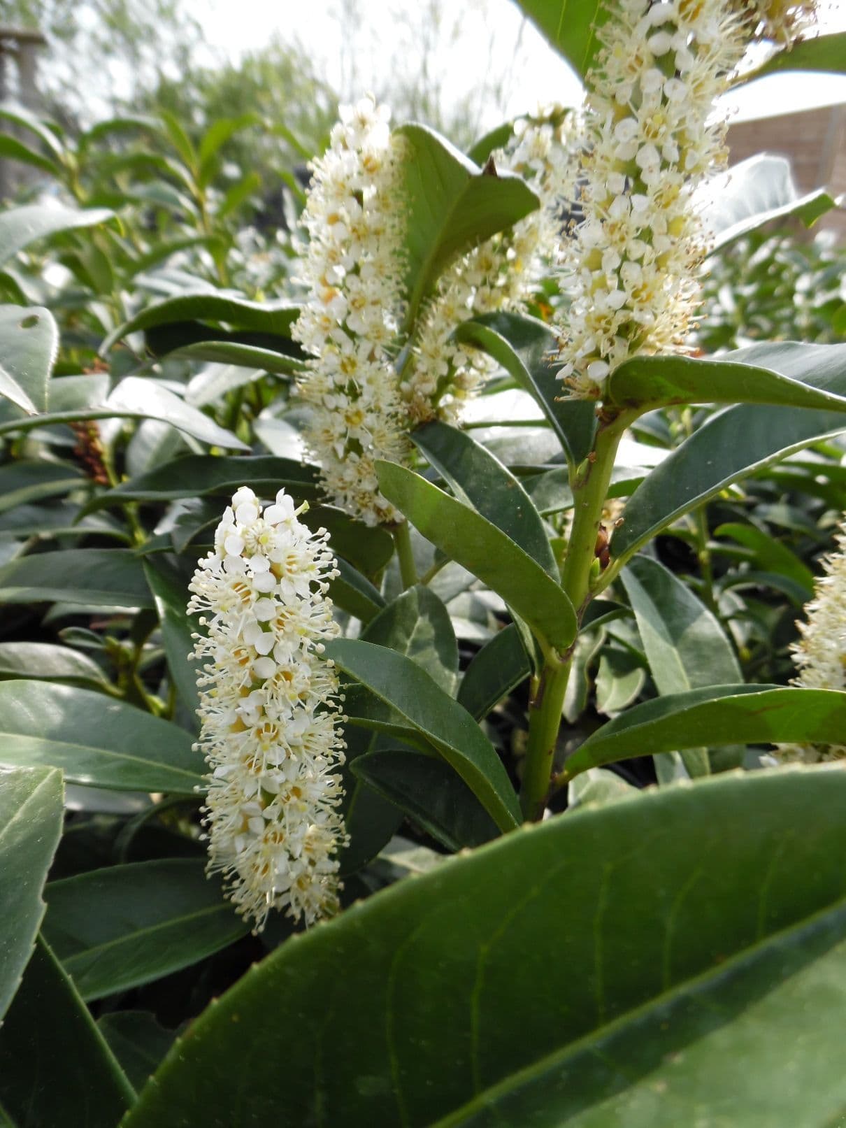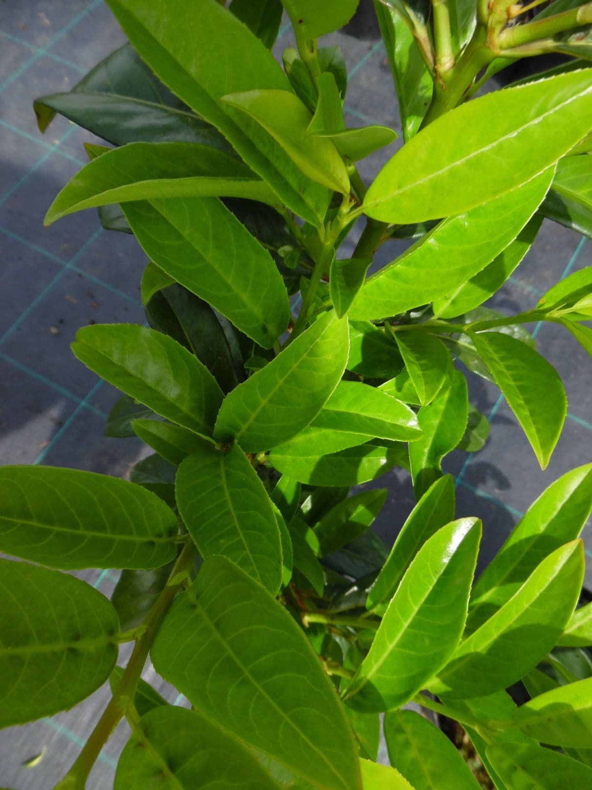 Prunus laurocerasus Genolia (Common Laurel Genolia) is a narrow dense upright Swiss evergreen shrub with shiny elongated dark green leaves. Produces clusters of white flowers in summer followed by some glossy black fruits. Slower growing than Common Laurel (Prunus Rotundifolia) but its narrow compact growth habit means little or no pruning is needed. Hardy and snow proof due to the plants Swiss origins. Excellent for small gardens less space and for narrow hedges. Can make a hedge of up to 3.5 metres if left to grow freely.
