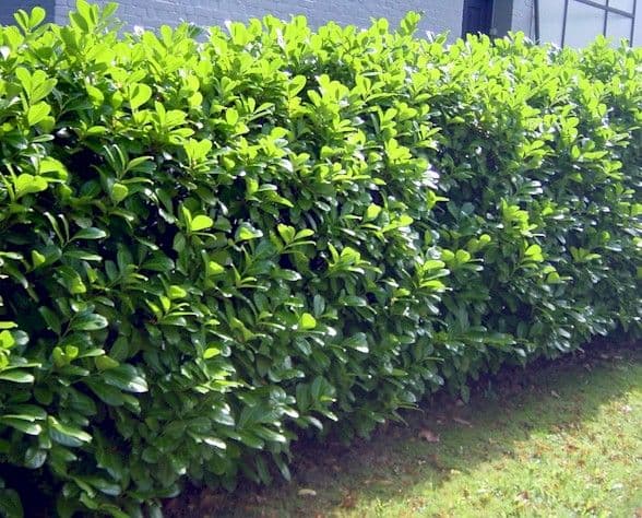 Prunus laurocerasus Rotundifolia - Common Laurel is a dense bushy, evergreen shrub with large oblong glossy mid green leaves. Produces spikes of white flowers followed by red fruits that turn black as they ripen. Grows to 400-500cm making an excellent hedge that can be trimmed to between 150-400cm (5-13ft).
