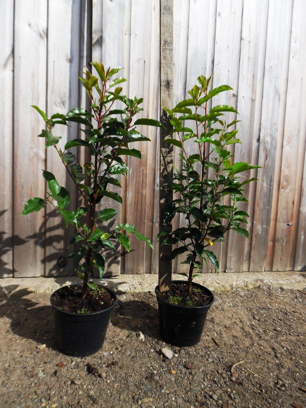 Prunus lusitanica - Portuguese Laurel is a dense evergreen hedging plant with glossy dark green pointed leaves on reddish stems. Scented white flowers in summer on untrimmed plants followed by red fruits on mature plants. Excellent in exposed, shady and chalky areas. Makes a good dense hedge and will grow up to 400-500cm but can be trimmed to form a hedge of between 120-300cm (4-10ft).